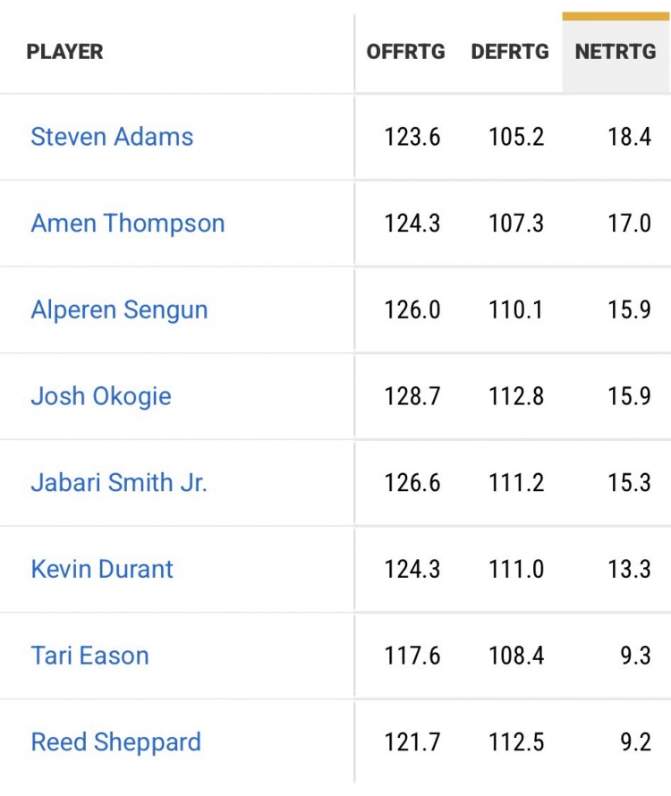 亞當(dāng)斯+18.4的凈效率值(在場(chǎng)時(shí)每百回合凈勝分)...