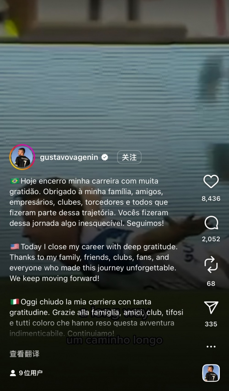 古斯塔沃寫(xiě)道:“今天,我滿懷感恩結(jié)束自己的職業(yè)生涯。感謝我的家人、朋友、俱樂(lè)部以及所有支持我的人們。繼續(xù)前行!”